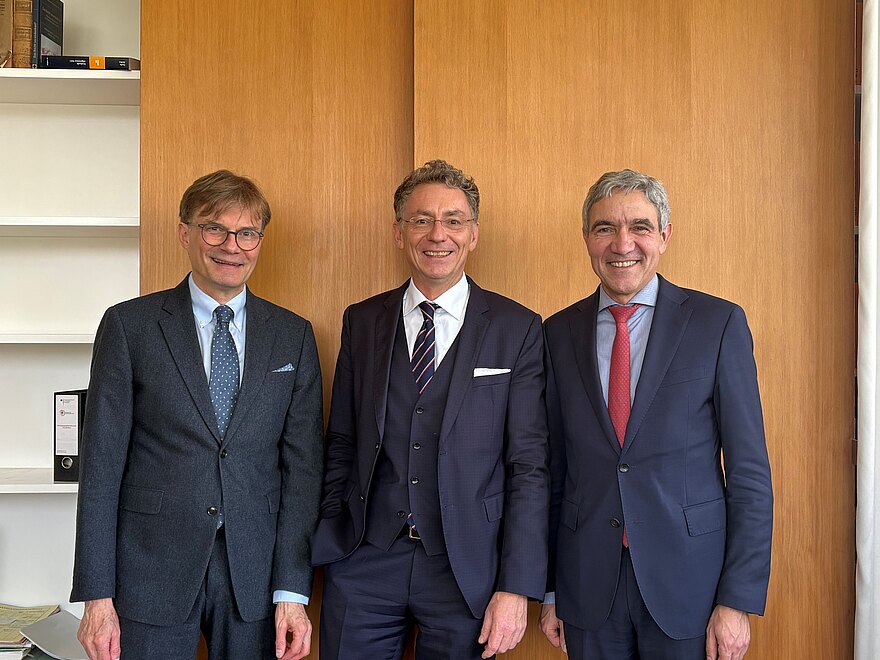 Von links nach rechts: RiBVerfG Prof. Dr. Henning Radtke, Prof. Dr. Christoph Safferling, Präsident BVerfG Prof. Dr. Stephan Harbarth